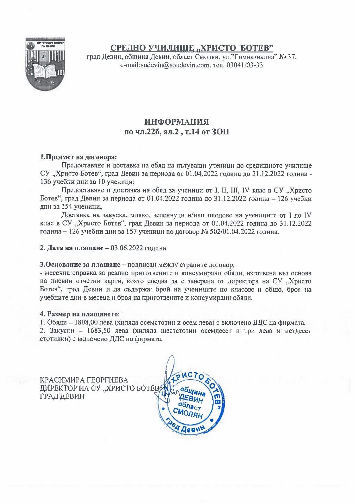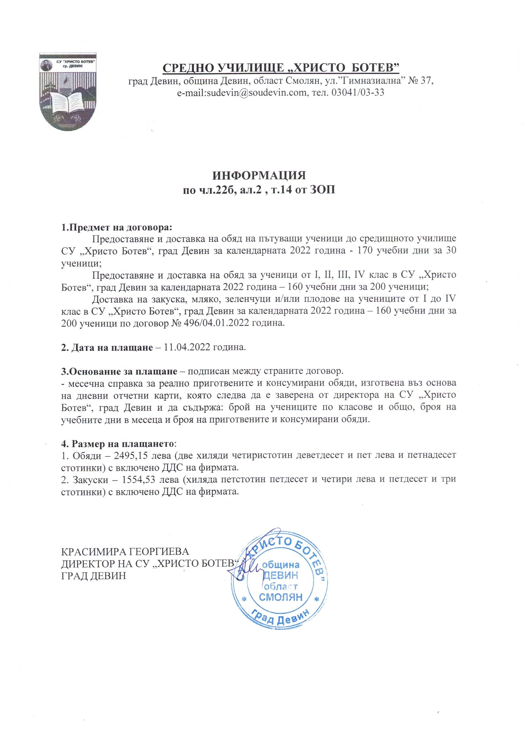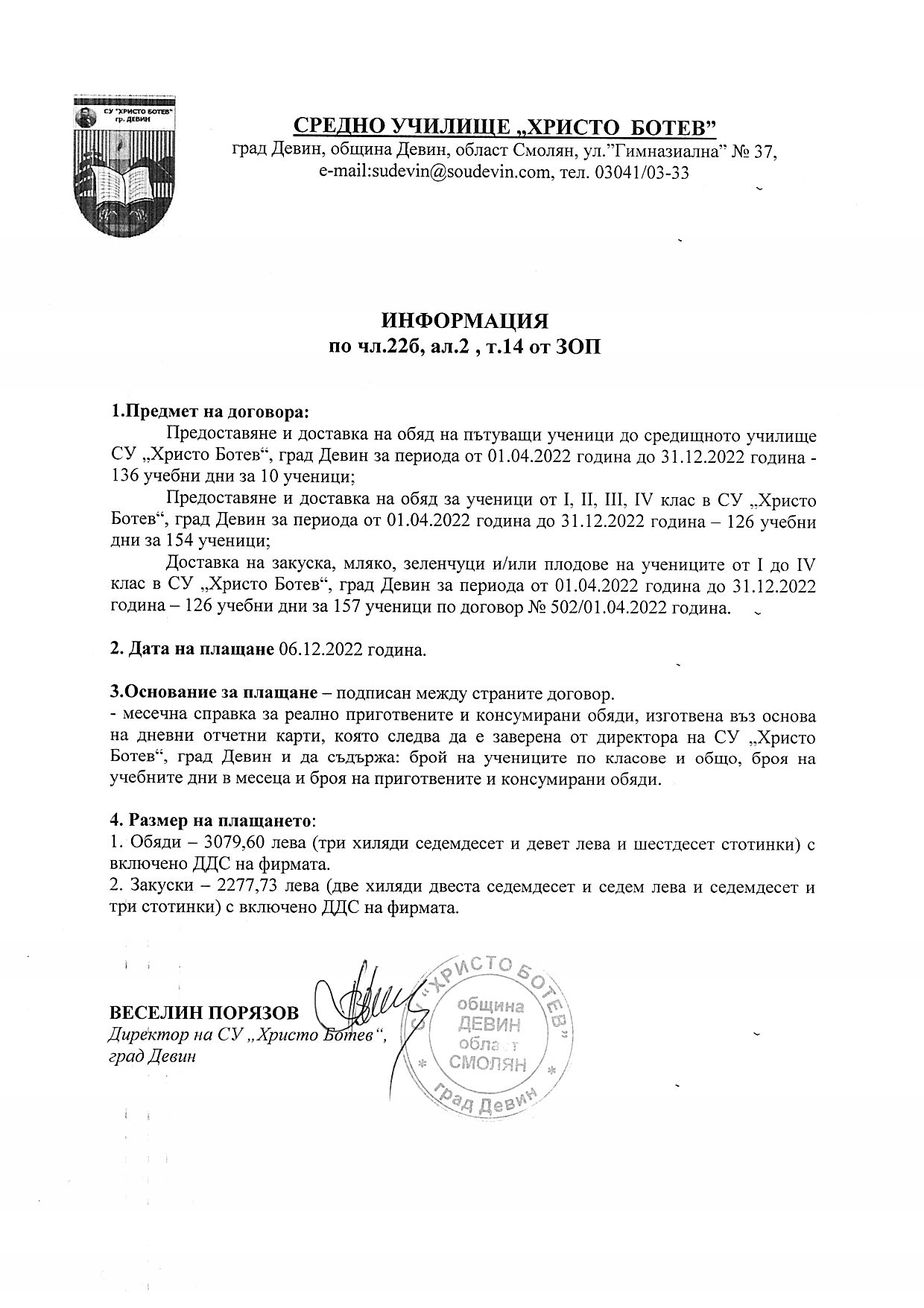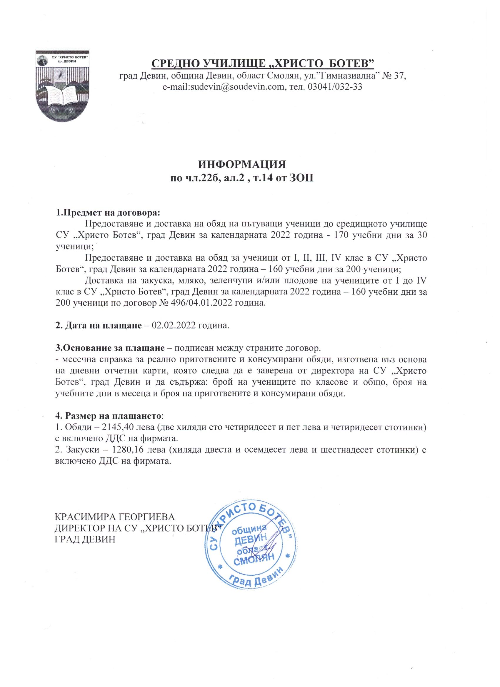 Отчет бюджет ІV-то тримесечие 2022г