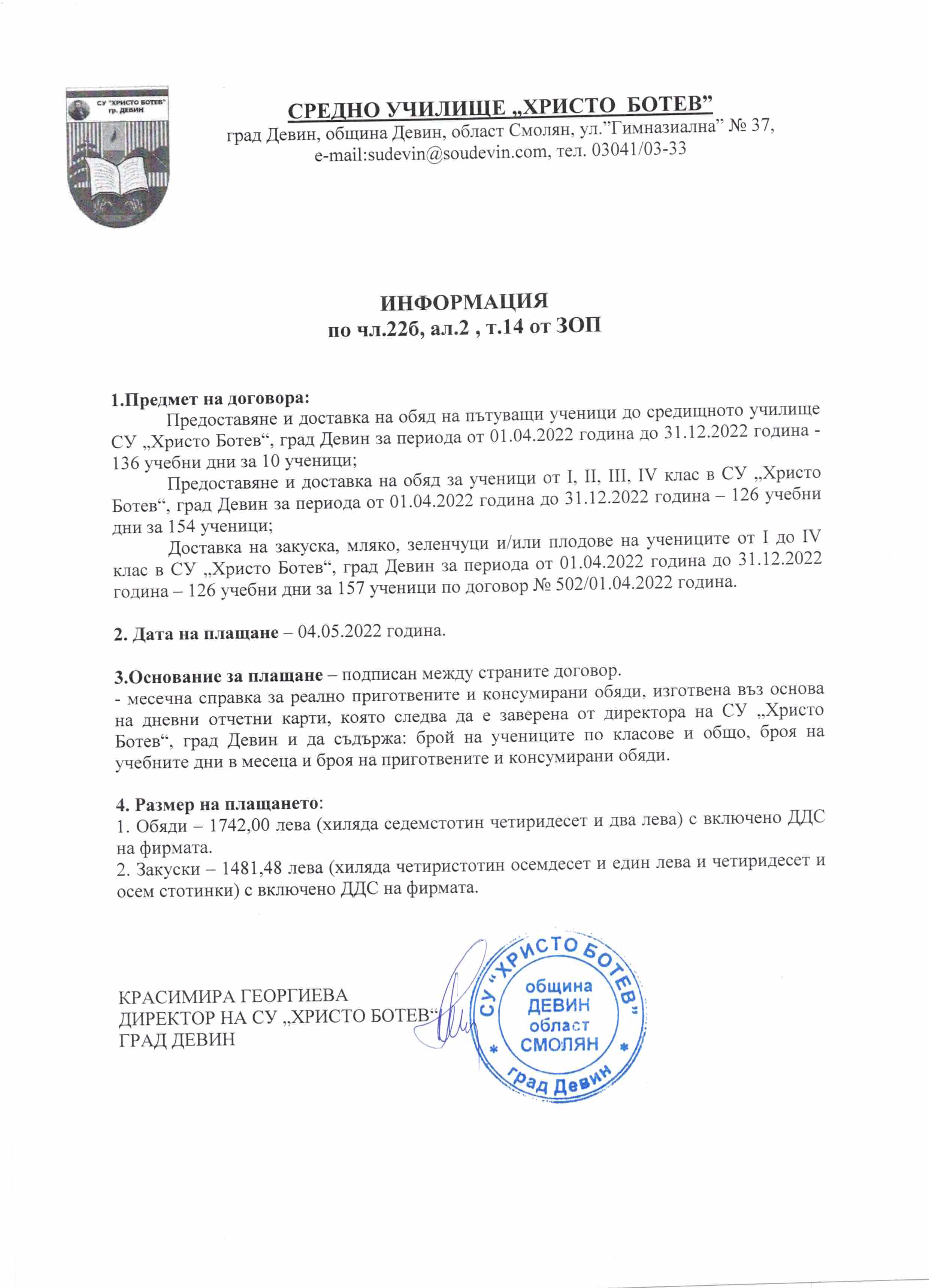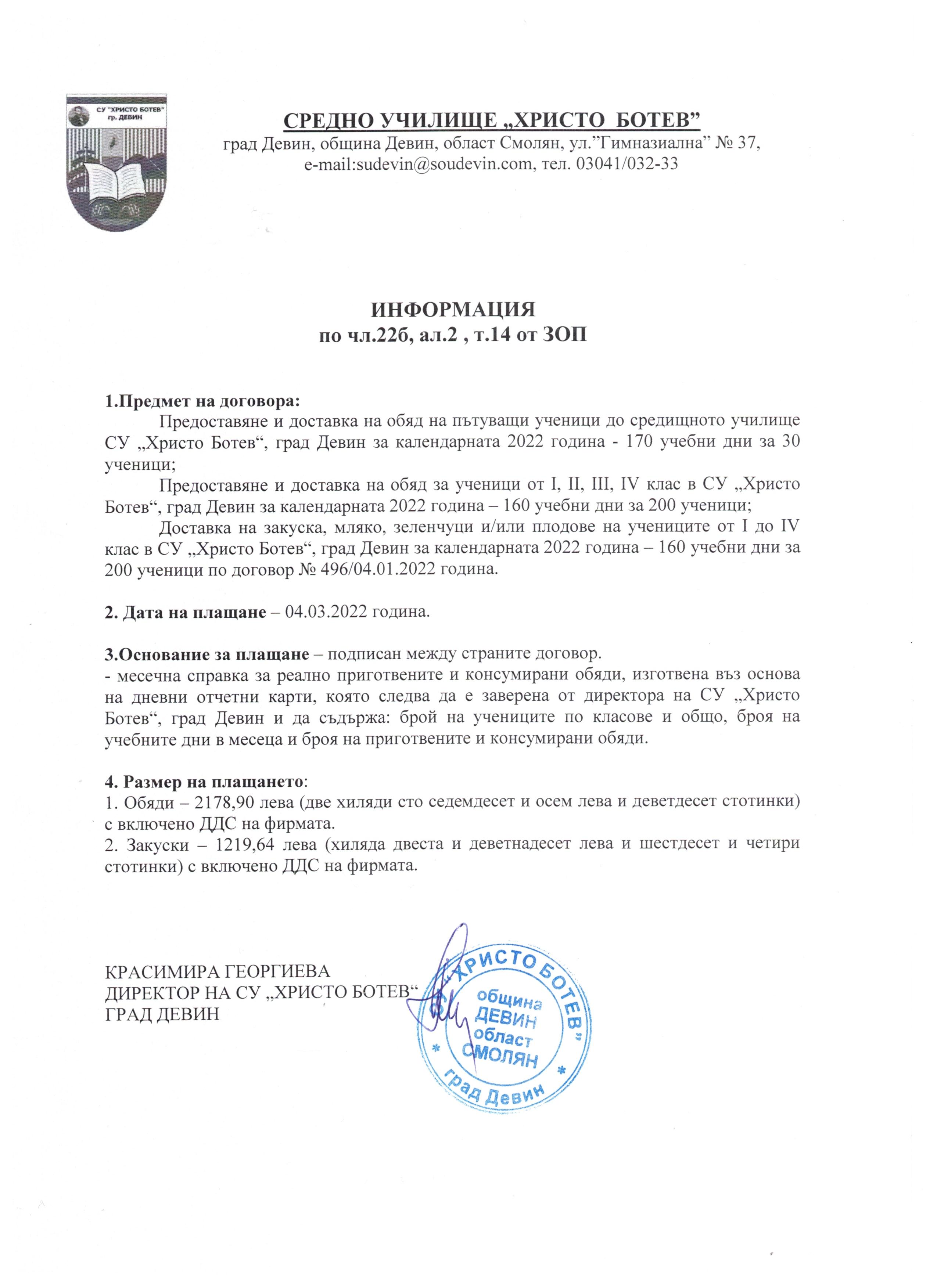 Политика за прозрачност спрямо субектите на данни в СУ „Христо Ботев“, град Девин