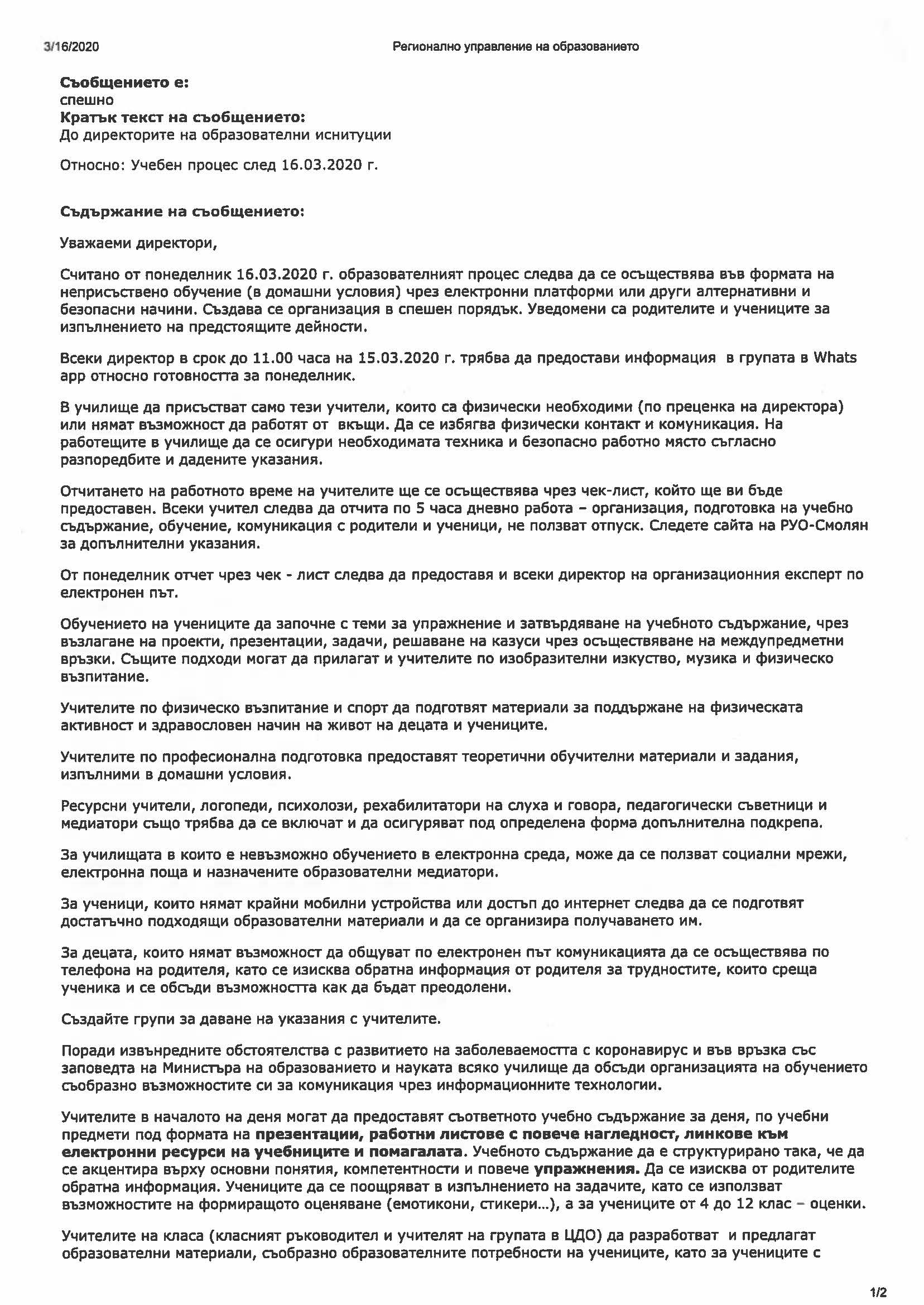 Препоръчва се да бъдат преустановени масовите мероприятия, в това число спортни и културни.