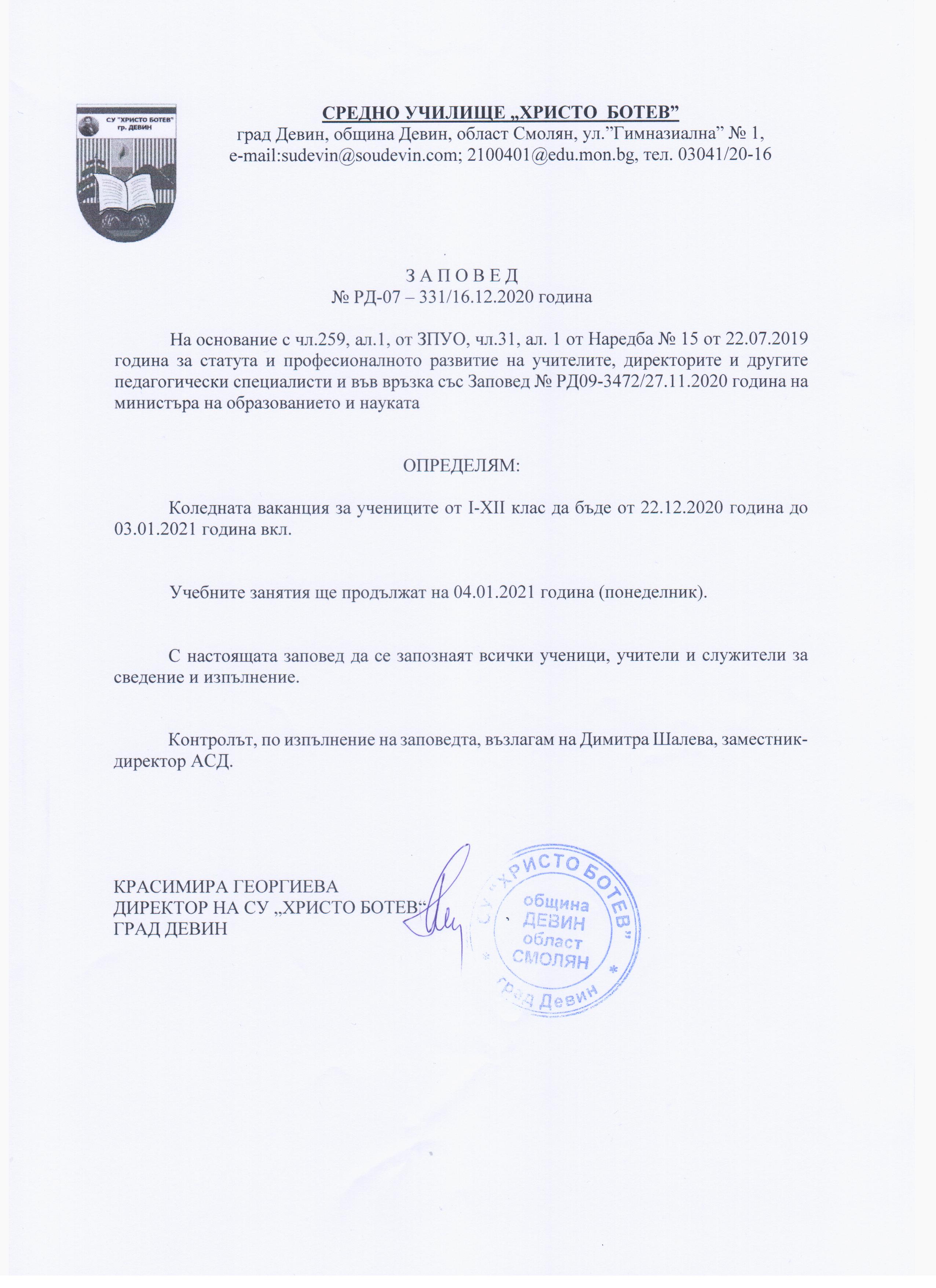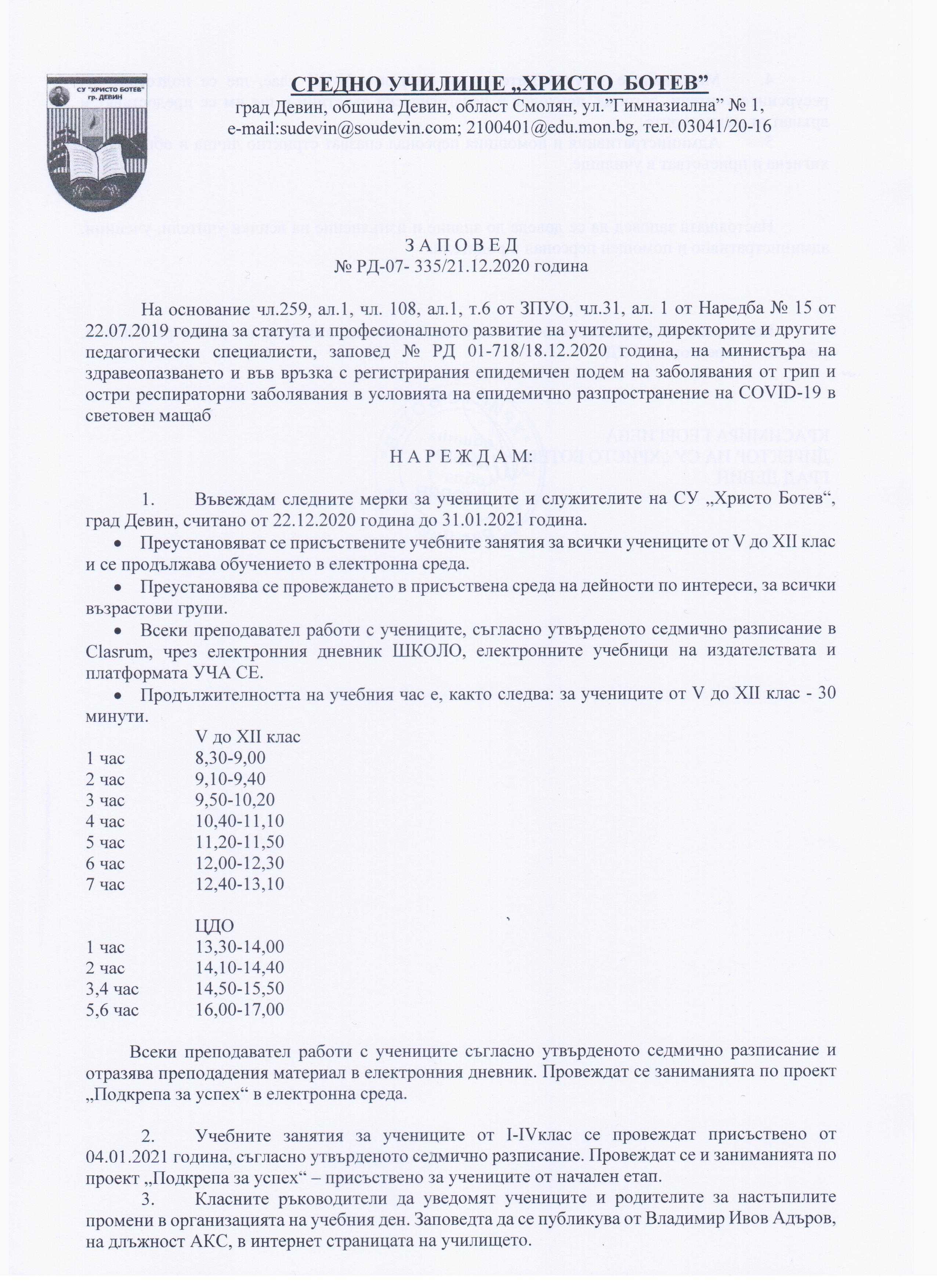СУ „ХРИСТО БОТЕВ“ ГРАД ДЕВИН