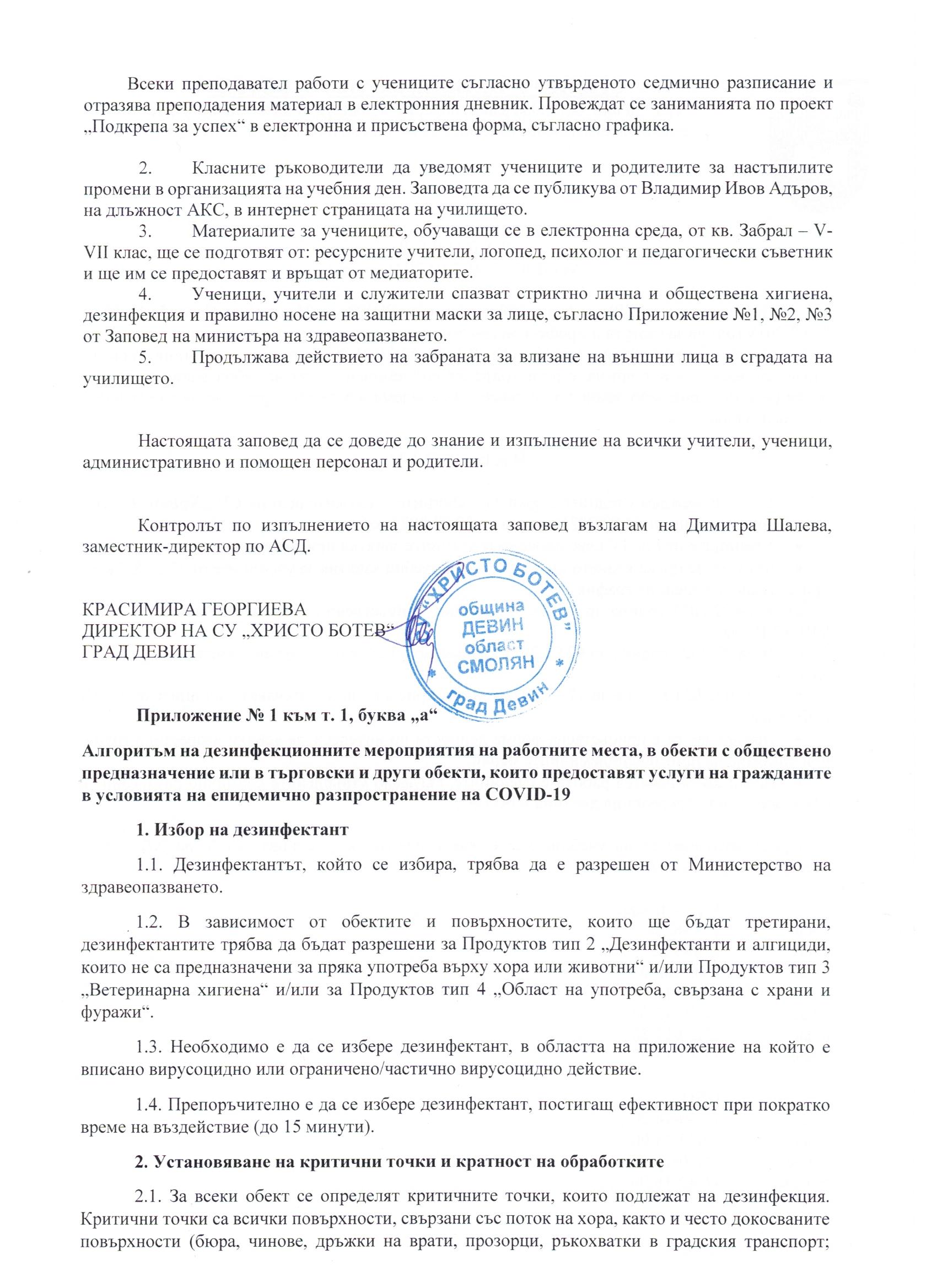 Правила за дейността и управлението на училището за учебната 2020-2021