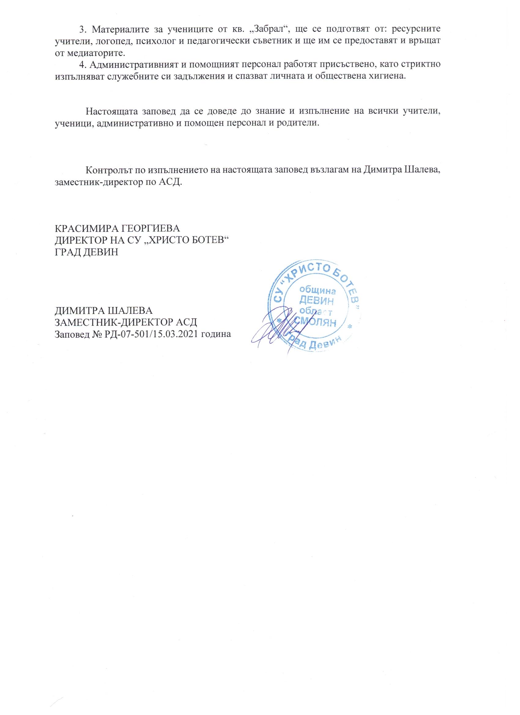 Правила за дейността и управлението на училището за учебната 2021-2022