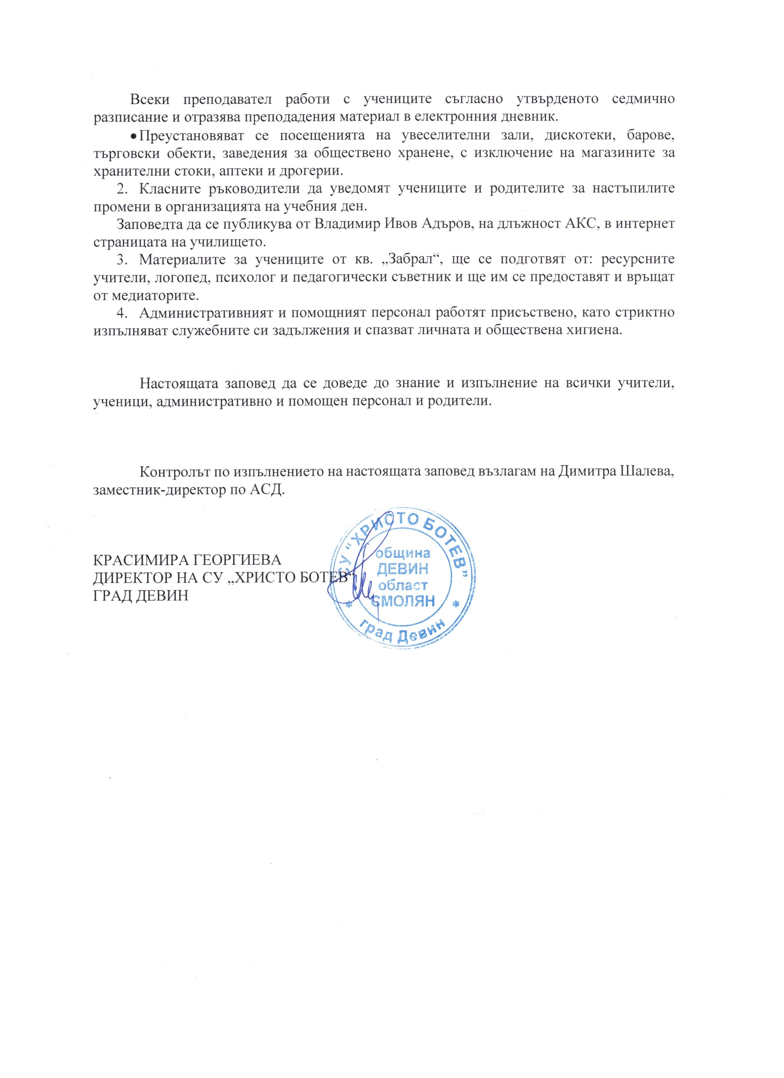 Правила за дейността и управлението на училището за учебната 2020-2021